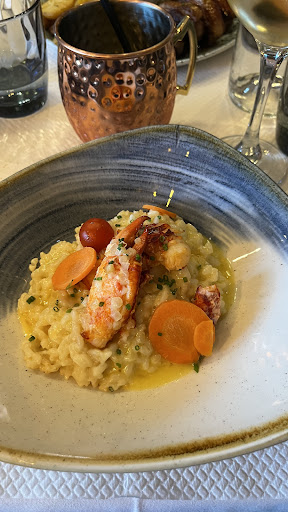 For our meal, we chose the lobster risotto and the roasted duck with potatoes. Accompanying our dishes, we selected a white wine recommended by our server, which you can see in the attached photos. Both dishes were outstanding—the duck was incredibly flavorful, and the risotto was perfectly al dente, generously served with tender lobster. The recommended wine was exceptional, offering a delightful complement to our meal.