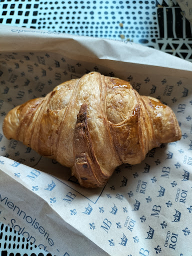 La viennoiserie est belle et appétissante, bien feuilletée, cependant l'odeur du pain au chocolat n'est pas là ...il manque quelque chose. La spécialité choc' o roi (chocolat, vanille et citron) n'est pas un coup de cœur...il manque le côté beurré façon bretonne. Prévoir un système pour protéger la vitrine des insectes Et la trancheuse dans le fournil, c'est pas l'idéal pour le personnel. Mais c'était le premier jour...à voir...