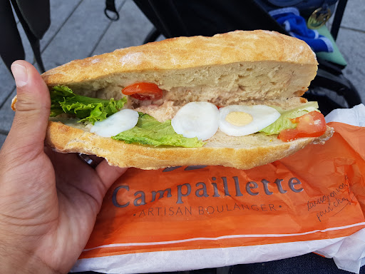 Read moreJe suis un peu déçu de cette boulangerie. Moi qui a une mère qui a travaillé dans une boulangerie pendant 13 ans, je sais reconnaître les bons produits et frais mais apparemment ce n'est pas vraiment le cas ici. La baguette Campaillette est bonne ça oui et fraîche, les paninis sont très bon aussi mais il y a que ça. Les desserts sont vraiment pas bon, ils sont trop sucrés et alors question de fait maison.. J'en doute sincèrement,et en plus il n'y a pas de choix.. Que des tartes Ugh. Et niveau service, bah je trouve pas l'atmosphère...