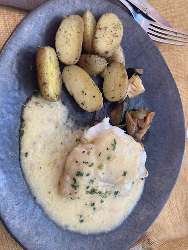 Le plat principal ne nous a pas totalement convaincus non plus. Le poisson semblait surgelé, et bien que les frites étaient bonnes, elles étaient tout de même assez grasses.