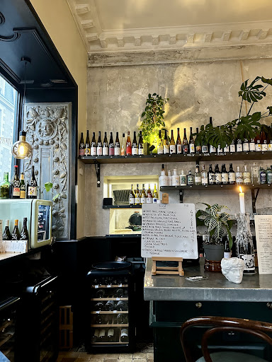 Read moreUne soirée dans un lieu à la déco très tendance avec un esprit alliant baroque et modernisme, au milieu d’éléments étonnants comme cette enseigne d’origine apposée sur un mur de la salle du bar et ce luminaire comme ce laiton sur les becs ou le lavabo. Une soirée dans une ambiance festive pour goûter des vins naturels et des gins au goût surprenant et plaisant. En prime, un service souriant et efficace ! On a hâte...