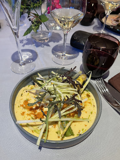 Read moreJe suis ravi d’avoir découvert Les Caudalies, où chaque plat est une véritable œuvre d’art. L'entrée à la raie était tout simplement exquise, avec une cuisson parfaite et des saveurs équilibrées qui mettent en valeur la fraîcheur du poisson. Pour le plat principal, le rouget grondin était un vrai régal : la chair tendre et savoureuse s’accordait à merveille avec l’accompagnement proposé, une composition subtile et pleine de finesse. Le dessert à la pomme est venu couronner ce repas en beauté. Frais, léger, et délicatement sucré, il a su clôturer l’expérience sur une note sucrée et élégante. Un grand merci à l’alternant Axel, qui s’est montré particulièrement aimable et attentif tout au long du service. Son professionnalisme et sa gentillesse ont grandement contribué à rendre ce moment encore plus agréable. Il en va de même pour le reste de l'équipe, tous les serveurs sont accueillants et attentionnés, faisant preuve d’une grande maîtrise de leur métier. Je recommande chaudement Les Caudalies pour toute personne à la recherche d’une cuisine raffinée et d’un...