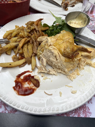 Read moreDe los peores servicios que he recibido nunca. El día que yo comí aquí, había 3 camareros, 2 de ellos encantadores, y otro, Thierry, que es la persona más grosera que he tenido la desgracia de encontrarme. Íbamos 3 personas a comer algo, pedimos 1 botella grande de agua, 1/4 de pollo con tagliatelle y 1/2 pollo con patatas fritas. Pedimos además un plato limpio para compartir el 1/2 pollo entre dos personas. El propietario del local, nos dice que si son 2 platos para 3 personas y le decimos que sí, a lo cual nos dice que perfecto. Nos trajeron el 1/4 de pollo con patatas fritas (y no tagliatelle que habíamos pedido), aunque eso es lo de menos. A continuación traen el 1/2 pollo pero no el plato limpio. Insisto pidiéndole un plato a Thierry, a lo que me dice que sin problema, veo que pasa el tiempo y el plato no aparece, por lo que me levanto de la mesa y lo pido dentro. Posteriormente viene Thierry a decirme que eso no es un bar, que es un restaurante y hay determinadas “normas”, que 3 personas no pueden consumir 2 platos, y nos pregunta qué de dónde somos. Respondemos que somos de Madrid, a lo que Thierry responde que se lo imaginaba… (sin palabras sobre los prejuicios de este señor). Al final, le digo que vale, que si no podemos estar, que me levanto de la mesa y me voy, que se lleve todo. A lo cual me responde que no, y se va de mala gana, trayéndome otro compañero suyo el plato limpio finalmente. Comemos el pollo muy nerviosos y la verdad es que se nos cerró el estómago. El pollo seco, las patatas quemadas y los tagliatelle muy secos, y si a esto le agregamos el trato deficiente, definitivamente no recomendaría este restaurante a absolutamente nadie. Si no queréis que os traten como basura, os recomendaría...