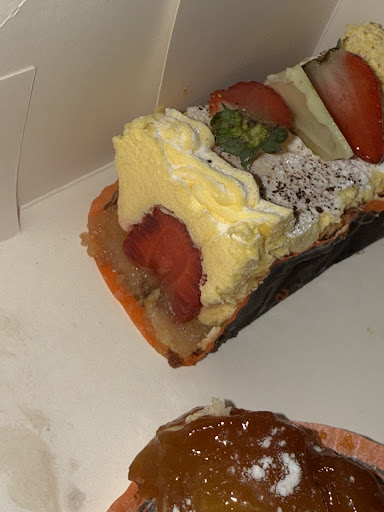 Franchement, je ne saurais mĂȘme pas dire Ă quoi il est censĂ© ressembler. Une chose est sĂ»re : si vous cherchez de bonnes pĂątisseries, fuyez cette enseigne. Entre lâaspect du flan et le goĂ»t du fraisier, il ne fait aucun doute quâil nây a pas de bon...