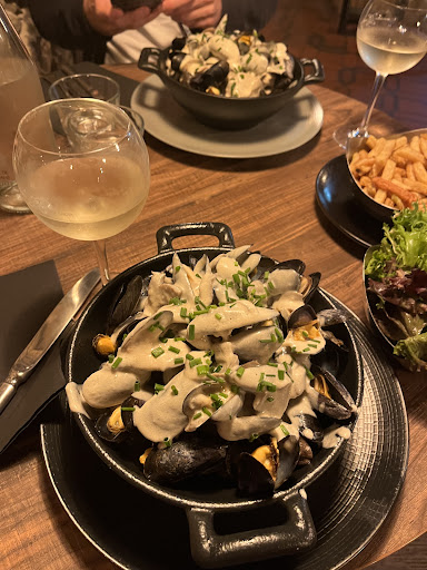 The moules were very good, the service was incredibly bad! We waited for 1h30 minutes to be served. We were seated on the top floor and when we arrived almost every table was empty. Unfortunately, our order was forgotten so we were the last to be served. That happens, we could even understand and forgive. But then it was the wine. I had asked for a glass of wine which I requested to be served with the moules so it would be cold when I drank it. However, they brought it to the table 15 minutes before the moules. We politely asked to bring us a new glass with cold wine in it. Did they do it? No, the waitress replied to my son that the place was full and we were demanding too much!!! Our only request was to change the wine! I took my glass and went to complain downstairs. The owner said he would change it but the same glass came up. And when I repeated that the wine was not as cold as it should be, they took the glass, added ice (to a Chardonay!) and returned it. I gave up. It was after 21h00 and we were starving, so I ate the moules with my very first iced chardonnay. As soon as we finished, we didn't even wait for the dessert. We just wanted to pay to go away. Did the manager apologise or care to say anything? Zero, nothing at all! So, as for the service so far it was our worst dinner experience in Nantes. Not to...