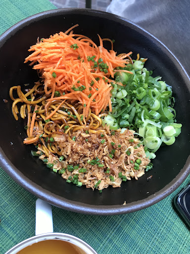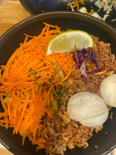 Les nems étaient ok mais alors le plat...quelle déception. Pas de saveurs, manque cruel d'assaisonnement, une dose d'oignons ou échalotes frits gigantesque je ne comprends toujours pas pourquoi, presque pas de poulet, les nouilles à peines sautées... Je pensais goûter un vrai bon Mi Goreng mais honnêtement vous pouvez passer votre chemin. Mon père (vietnamien) fait de meilleurs Mi Goreng, mais ne pouvant pas rentrer chez moi depuis longtemps je voulais retrouver ces saveurs qui me manquaient. Et merci je sais que le plat est Indonésien, je suis SPÉCIALISTE d’Asie du Sud-Est donc ne vous inquiétez pas la gastronomie asiatique je connais. 😉