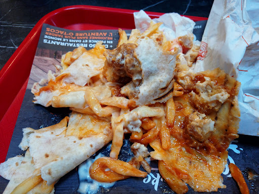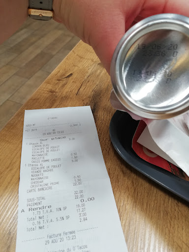 Alors je met quand même 2 étoiles car généralement à la caisse, ça se passe bien. Sinon pour le reste, rien ne va. La 1ère fois avec les stagiaires qui bossaient là, j'ai eu le droit à mon tacos qu'au bout d'1h, mais j'avais le droit à de de la sauce fromagère que je ne voulais pas ! Pire mon collègue a eu le droit à du porc (bacon) au lieu d'un supplément poulet. Heureusement qu'il n'était pas musulman... Bref, je réitère l'aventure et à nouveau, la sauce fromagère alors que je spécifie bien ne pas en vouloir. Je retourne mon tacos et on m'en donne un nouveau... avec cette #@!& de sauce fromagère. J'abandonne et me force à manger, écœuré par cette sauce. Malgré plusieurs tentatives à avoir un tacos mangeable, je renouvèle l'expérience. Décidément j'aime ça ! Je redemande sans cette foutue sauce fromagère et juste une sauce barbecue. Résultat en croquant dans mon tacos, ça gicle de partout tellement le tacos était gavée de sauce fromagère et je me brûle la main en cadeau tellement la sauce était bouillante. Mon collègue idem en mangeant, ça a giclé partout sur sa veste et l'a cramé. En plus les frites n'étaient pas cuite, jamais vu ça. Le tacos était tellement imbibée de sauce fromagère et tellement bouillante qu'il s'est littéralement désagrégé après deux tentatives de manger dedans. Bref, une expérience vraiment horrible. Je n'oserai plus y mettre les pieds et je vous laisse le plaisir d'observer le résultat d'un tacos mal préparé. Pour info, je voulais juste un tacos avec...