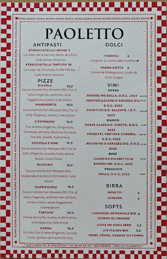 Read moreC'est déjà la deuxiÚme fois que je me rends chez Paoletto, et je suis plus que satisfaite de ce restaurant. La premiÚre fois, j'ai déjeuné sur place, et nous avons été trÚs bien reçu, avec un accueil chaleureux et convivial. De plus, les pizza montrent un vrai savoir faire, elles sont excellentes. Concernant les desserts, ils sont tout aussi excellents. Pour ma seconde visite, j'ai pu tester la vente à emporter, et encore une fois aucune déception, que ce soit sur la rapidité du service ou bien l'accueil chaleureux. Je recommande vivement...