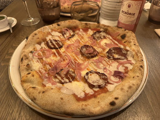 Restaurant peut accueillant, car le patron n'est pas du tout avenant aucun sourire, de plus on donne l'air de lui casser les pieds Quand on se présente pour dîner. En ce qui concerne les pizzas je ne vois ou elles sont bonnes malgré les produits Bio. Pâte humide pas cuite sauce tomate insipide sans goût. De plus cela est aberrant rien à grignoter pour l'apéritif. Même pas le temps de boire son verre tranquille que les pizzas sont déjà servis. Sans compter que le service laisse complètement à désirer car en fonction du serveurs les informations sur le concept de ce restaurant varie. Après le dessert rien d'exceptionnel trois graines de courges qui se battent en duel dans ton ramequin.. la seule chose qui les intéressent c'est le chiffre d'affaire. Honnêtement on se croirait à l'usine. Les vins rien de succulent. De plus quand tu commandes deux verres et que tu n'en reçois qu'un et que tu le réclame le patron remet en cause ta demande. Personnellement je n'y retournerai jamais cher pour ce que sait. Ça ne vaut absolument pas la crêperie du théâtre du temps de Richard au moins là tu te régalait. Grande déception repas de très mauvaise qualité aucun accueil déco rien de transcendant nul à fuir... Après si le commentaire ne vous convient pas et bien ça me mets complètement égal. Car il va falloir ce remettre en question. Je ne vois pas comment les gens peuvent se régaler avec ce genre de cuisine. Car j'ai lue plusieurs commentaires et la je me dis que c'est du mensonge et que lon se fiche de toi. Très très déçu de ma venue. J'aurais du fuir d'elle départ en vue de l'accueil désagréable et j'aurais économisé mon argent 💸 pour une autre pizzeria notamment la Casa NOSTRA la au moins j'aurais...
