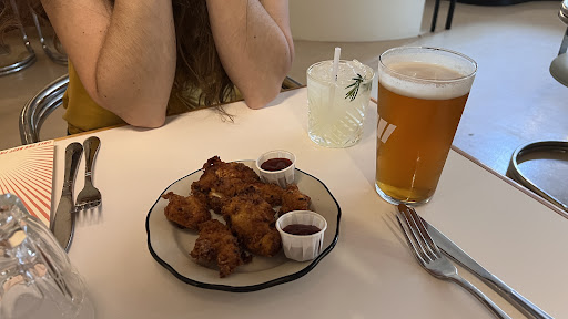 Overall disappointed by this restaurant. First of all the decor and interior design is really nice but it's a pity that the tables and seats weren't clean (crumbs and a hair on our table). The ketchup bottles weren't refrigerated, and ours had a lot of mold in it (which isn't a good sign for the rest of the experience). About the food we ordered oignon rings, they were ok but hardly any oignons. The sweet potato fries were good. The crispy chicken burger was good and the American original was ok, nothing great and the pickles were missing. At the payment he asked us how it was and we mention the missing pickles and he rudely responds "Why didn't you say anything?" We think this isn't great attitude for customer service, however he gave us 10% discount and the female waitress was nice...