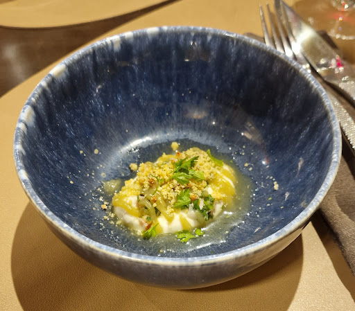 Read moreAccueil : 5/5 Confort de la table : tres bien Service et présentation des mets : impeccable Reservation obligatoire : c'est très bien , si ca permet d'optimiser les couts et preparations de plats Pas de carte, juste 1 seul menu: la aussi, je veux bien être d'accord comme pour l'explication précédente. Plats : bien .... mais , personnellement, comme certains restaurants la quantité servie est trop faible Sans forcément augmenter le composant principal, il faudrait 30% de plus de garniture d'environnement. Franchement, c'est trop juste ! Le trop grand nombre d'ingrédients enlève la mémoire du goût du plat (en sortant) Quand on commence la première bouchée, on a déjà oublié la liste des ingrédients énuméré au service .. alors , à quoi ça sert vraiment ???? Voilà, c'était ma réflexion personnelle, qui est d'ailleurs valable pour un grand nombre de restaurants " à tendance gastro " : c'est très bon mais on ne se rappelle plus vraiment ni le goût du plat ni la...