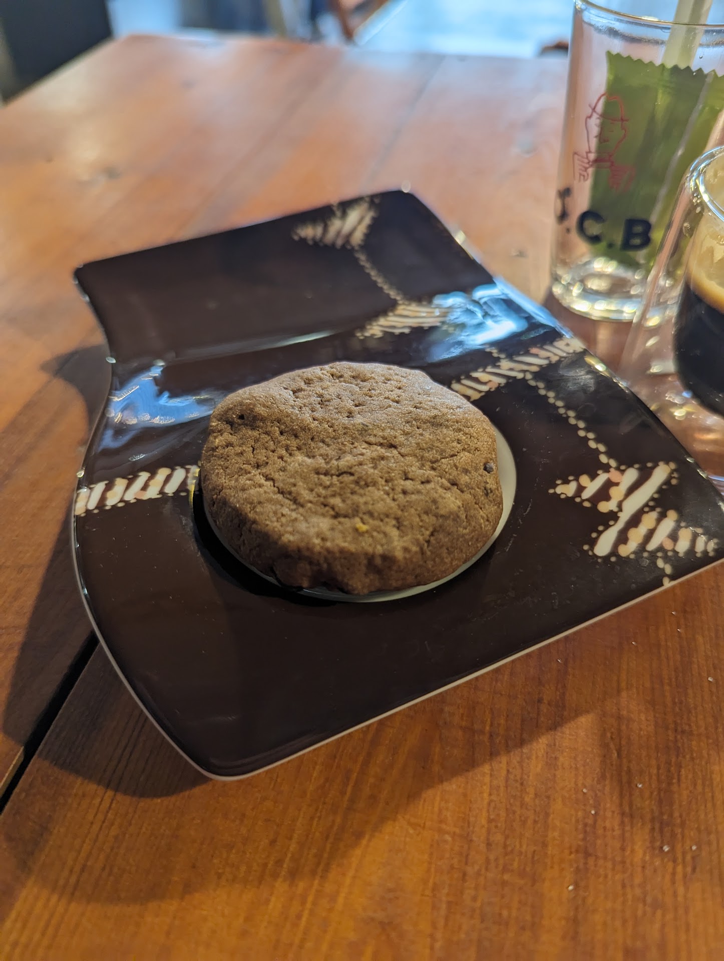 I was on the road and needed a coffee. The coffee was fine but it was the cookie that was extraordinary! As an American, I know cookies. This homemade recipe was inspired by a visit to America by the chef's wife. No offense to my own country, but we need to step up our game in cookie making. The depth of flavors in this cookie was exceptional. Great job! I hope to return...