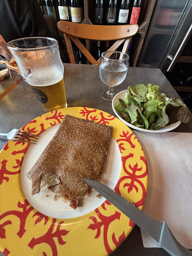 Un des meilleur restaurant breton de Nantes. Je dis bien restaurant breton car ce n'est pas une crêperie, c'est d'ailleurs indiqué sur le restaurant. Concernant la carte elle n'est pas très garnie en comparaison des crêperies justement, mais elle a son avantage de changer régulièrement et en fonction des saisons. Elle a aussi sont avantage de proposer de vraies galettes originale ou avec de la vraie cuisine derrière (bref des galettes qu'on aurait pas pensé ou qu'on aurait eu la flemme de faire). Vous pouvez aussi retrouver un ou deux plats qui ne sont pas des galettes, comme leur kig ha farz en hiver qui est délicieux. La cuisine, elle, est une vraie cuisine. Et les ingrédients ont du goût et sont de qualités. Certes certaines galettes sur la carte ne vont pas être très garnie mais à moins de 10 euros une galette avec de bons ingrédients et de la cuisine il ne faut pas espérer la lune. Les galettes les plus chers sont au alentours de 13 euros, et elles sont plutôt bien garnies, et souvent originales. Elles explosent toute concurrence en terme de qualité/prix selon moi. Par contre il est vrai de mentionner que les desserts sont bons mais assez chers en comparaison d'autres restaurants. Mais moi ça ne me choque pas, il faut bien faire des marges et rien n'oblige a prendre un dessert.