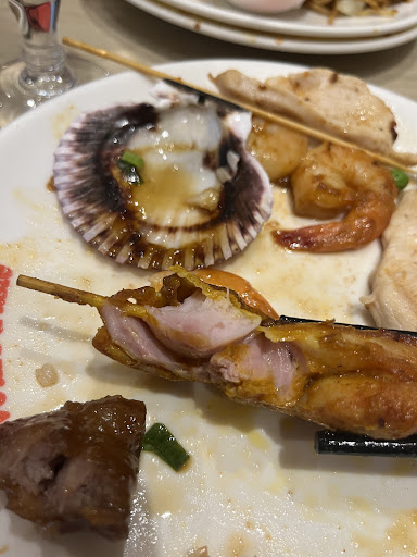 Read moreJe ne recommande pas du tout :( Kir pêche presque imbuvable. Les 4 plats de viandes chinoises que j’ai goûtés avaient un goût désagréable, je me suis demandé s’il n'y avait pas un goût d'eau de javel à un moment, 2 nems poulets qui n'avaient pas le goût de poulet. pas de sauce pour ma salade chinoise. J’ai failli laisse les crevettes. J'ai pas du tout osé toucher les sushis qui avaient une drôle de tête, ni les fruits de mer, et encore moins la viande cru pour les grillades. Bref, le 3/4 des plats ne donnaient pas du tout envie. Je me suis rabattue sur les frites qui étaient ok ainsi que la mayo. Les desserts n'en parlons pas, j'ai pris une mini religieuse, une panna cotta et des litchis. Pour les litchis, je savais que c’était une boite donc je ne prenais pas beaucoup de risque. Par contre, la mini religieuse n’était pas bonne et la panna cotta a été remplacé par un liquide avec goût de fromage blanc. mon fils n'a mangé que des nuggets et n'a pas fini sa glace qui n’était pas bonne non plus. J’en ai eu pour 54 euros. Hyper cher et hyper décevant !!! J’espère que nous n’avons rien attrapé vu le niveau. Les 2 personnes qui nous ont servis ne parlaient pas français, l’ambiance-déco était glauque et le service n’était pas sympathique. Un resto de ce niveau-là ou les enfants viennent manger, ça ne devrait...