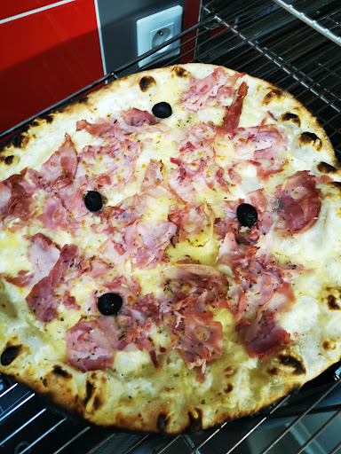 Pour 2 adolescents et 2 adultes gourmands ...Nous avons commandé 2 Grandes Pizza (16€ l'unité) 1 végétarienne et une marocaine. Lorsque je suis allé les récupérer, j'ai été surpris en voyant la fourmilière s'affairer, un véritable ballet, avec de la bonne humeur. Il y avait un petit peu de retard (15 minutes, normal quoi !), mais c’était soir de match, et il m'a semblé que la demoiselle de l'accueil débutait et ça ne semble pas évident d'organiser la répartition des pizza dans le four en fonction de leurs tailles.. Mes "grandes" pizzas étaient tout simplement "énormes", la pâte est fine (moi j'aime beaucoup mais les gouts et les couleurs ...) les ingrédients sont extra frais, je les ai trouvé de très bonne qualité en tout cas ça avait vraiment un bon très gout et un bel aspect . A noter que les pizza sont cuites au feu de bois et ça donne ce petit gout fumé extra qui change des chaines américaines ! Le nombre d'ingrédient parait limité sur la carte, ne vous y fiez pas, la garniture est carrément généreuse . Pensez à demander l'huile piquante et éventuellement que l'on vous coupe la pizza si vous n'avez pas de couteau ;-) )