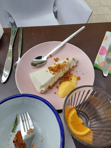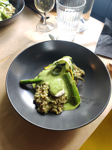 Read moreWe’ve been finding it really difficult to find a healthy, vegetarian meal during our travels around France. We were so pleased with these 2 courses at this very busy cafe in the park. We weren’t really sure what we were getting but kept our fingers crossed. The first course was chick peas on a pea and mint purée. 2nd course was asparagus on a bed of risotto but that was made from Bulgaria Wheat instead of the usual Arborio rice and it was superb. In Brittany they use crushed bulgar wheat to make crepes. Also the cheesecake was a huge surprise, so creamy and sharp, the lemon curd was a...
