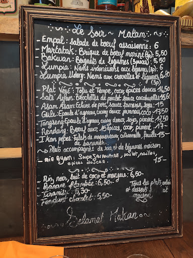 Petit restaurant particulier ! nous avons été accueilli par un hôte vraiment sympathique et convivial qui nous a mis à l'aise d'entrée de jeux. Ici pas de chichi sa se vois et sa fait du bien ! Rien de guindé, c'est à la cool ! Nous avons pus faire notre choix parmi une carte riche mais concise. Notre choix c'est porté sur un ensemble d'entrées : beignets de crevettes, beignets de légumes et nems de légumes à lindonesienne, le tout accompagné d'une salade avec une très bonne vinaigrette . Les beignets de crevettes et de légumes nous on transcendé ! Moelleux et léger, le top ! Gros plus pour les beignets de crevettes que nous ne connaissions pas sous cette forme. En revanche moins fan des nems que j'ai trouvé plus fade. Les sauces pourrais peux être révisitées néanmoins elles on été appréciées ! Mon plat était absolument divin : des brochette de viande à la sauce cacahuète, accompagné de riz et de choux cuisiné. Présentation à moderniser mais le goût est là. Mon conjoint à pris de l'agneau au curry doux. Le tout avec riz et légumes. Agneaux vraiment fondant (pas eu besoin de la fourchette pour le coupé), excellent. En revanche sauce curry trop liquide, dommage, on est fan des sauces épaisse qui nappe le riz ;) nous avons passé un très bon moment et nous reviendrons sans soucis ! Merci pour...