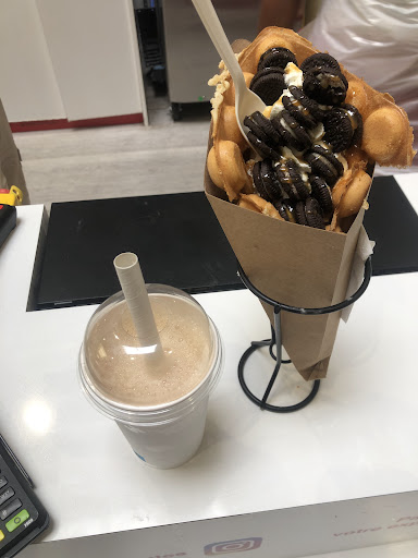 Depuis son ouverture cette établissement n’a fait que se dégrader!!! Au début sa pouvait aller!! Mais l’a vraiment c’est scandaleux de payé pour une glace même pas correcte et avec 3 bonbons pause négligemment par dessus!!! Mais le pire c’est l’hygiène !!! Des employés qui ne se lavent pas les mains avant de vous servir, les cheveux détaches (c’est pas normal dans la restauration) un présentoir à friandises écurant dont les fruits ont l’air d’être là depuis trop longtemps !! Les gaufres prête depuis je ne sais quand hyper cuite et qui colle au carton !!Les tables toutes collantes les poubelles qui débordent !! Et les employés sans aucun sans du commerce ou de l’accueil avec un changement trop important pour qu’ils puissent réellement être bon dans leur travail y un problème sûrement avec les responsables qui ne savent pas garder leurs employés qui sont plus concentré sur leur téléphone que sur leur travail!! C’est une franchise je vais faire un courrier au service compétent afin de leur faire savoir les réalités de cette franchise car cet établissement ne mérite aucune étoile car vraiment...
