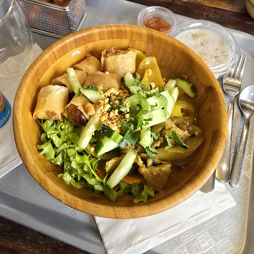 Concept intéressant pour les gens pressés qui aiment se faire sonner par un biper lorsque leur plat est prêt. Les plats sont abordables et quantitatifs. En ce qui concerne la qualité, j'ai commandé un Bo Bun qui est loin des saveurs asiatiques habituelles. C'est une version très française du Bo Bun qui s'apparente plus à un ragoût bœuf carotte avec des nouilles. Pas mauvais en soit mais éloigné de la recette original. La prochaine fois je paierai 2 euros de plus pour un véritable Bo bun. Contrairement à ce que j'ai lu au dessous l'équipe n'est pas particulièrement accueillante et souriante. Le service est très rapide...