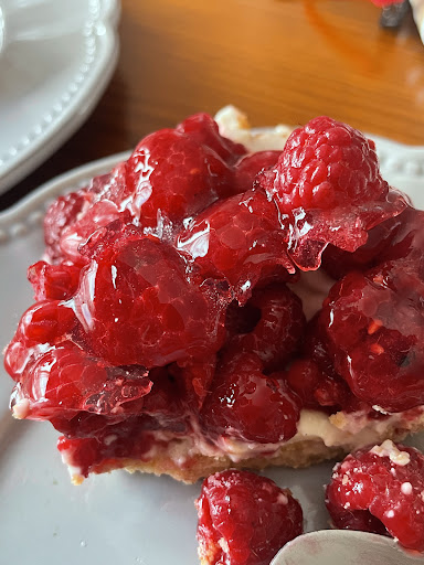 Donc on vient juste de passer récupérer la tarte après trois essais, elle nous a donne une plus petite tarte que la première et en plus surgelés. Toutes les framboises sont gelées, le biscuit est plus dur qu’une pierre est presque sans crème.