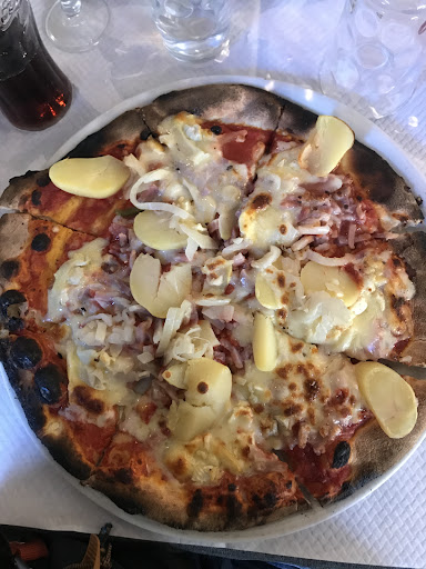 Nantua is een zeer leuke plek aan een prachtig meer en dit restaurant is helemaal top. Wij gingen twee maal langs. De eerste keer 's avonds voor een pizza raclette. Het deeg van hun pizza is geweldig, krokant en licht. Vandaag gingen we terug op de middag. Omdat het extreem warm was, stelde de serveuse ons een Italiaanse salade en een steak tartare voor. Allebei topgerechtjes! Het restaurant heeft een ruim terras langsheen een vrij drukke centrumstraat maar het houdt de boel levendig en het verkeer rijdt er rustig langs. De bediening is de kers op de taart. Zeer correct (zoals ook de prijzen), verzorgd en met een persoonlijke touch. Zowel de uitbater als de serveuses slaan graag een babbel en een grapje. De sfeer zit hier goed en dat geeft net dat extraatje aan het...