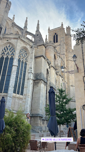 Pas la peine de parler de déco intérieure : il n’y en a pas, puisque tout se passe dehors, sur la petite place derrière la cathédrale Saint-Just. Résultat, du mobilier public agrémenté de quelques plantes en plastique… charmant à sa manière.