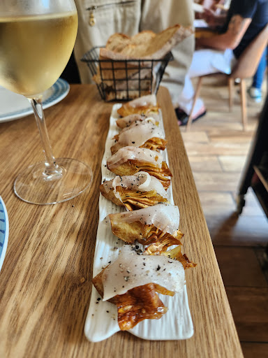 Read moreUne formidable découverte qui deviendra un incontournable pour nous.petit restaurant au coeur du village de Gruissan, les produits sont de qualité et vous font voyager entre L Aude, le Gers, le Béarn, le Pays Basque et la Bretagne. La cuisine est ouverte et on y voit que les plats sont faits minute. Chaque plat est gracieusement présenté, on y sent la générosité et des associations de saveurs extraordinaires, voilà une cuisine originale, ça change ! La patronne est chaleureuse, elle explique chaque plat à merveille et ça aide car tout est très alléchant on a envie de tout goûter, voilà pourquoi nous reviendrons faire honneur à d'autres plats. Pour ce soir nous avons goûté les croquetas de seiche à l'encre de seiche, le carpaccio de pied de porc, le carpaccio de poulpe , le no lobster Roll de gambas et son pain brioché, le far breton de la patronne et le kouign-amann avec un vin du coin (sélection de vins locaux et même bio). Il y en a pour tous les goûts puisque escargots, magret, bœuf ,araignée de veau ou encore moules sont aussi au menu. Ouvert depuis seulement un an et demi ça leur promet un bel avenir. Merci et...