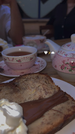 J’ai personnellement goûté le cake banane nutella accompagné d’un thé chaud servi dans une jolie vaisselle accordée au lieu. C’était délicieux, le cake était incroyable !