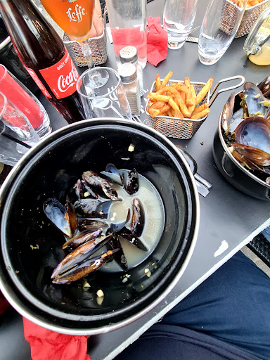 C'était le 9 ou 10 août dernier. Nous sommes arrivés tôt au restaurant (18h45) sans réservation avec ma tribu (1 couple+3 enfants et la fameuse poussette qui embête tout le monde!). Nous avons été bien accueillis et on nous a trouvé une jolie place où la poussette n'était pas gênante pour le passage. Notre serveuse a été très souriante et très gentille, surtout avec notre bébé qu'elle a installée dans une chaise haute. Notre prise de commande et l'arrivée des plats ont été très rapides, c'était agréable. Nous avons choisi ce restaurant car il proposait des moules dans le menu enfant, (ce que ma fille voulait) et c'est plutôt rare. Les moules étaient juste délicieuses ! Énormes comparées aux moules du Nord de chez nous 😉. La pièce de bœuf choisie par mon mari était également succulente. J'enlève 1 étoile pour 2 raisons: la 1ère c'est qu'une fois l'heure de pointe arrivée , nous avons attendu très longtemps pour avoir la carte des desserts puis pour payer l'addition (des personnes arrivées largement après nous sont parties avant nous) or nous avec des enfants, c'est pas évident d'attendre aussi longtemps. La 2ème raison c'est que les desserts ne sont pas à la hauteur des plats. La coupe de glace était déjà pas mal fondue et le goût n'était pas...à mon goût ! Hormis cela je garde quand même un souvenir agréable et je reviendrai sûrement lors de mes...