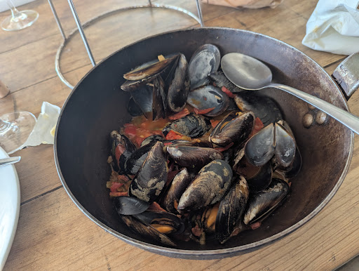Our order was taken. I ate a couple of starters. The Oysters were gorgeous and quite salty. The moules in chorizo were OK, I would have expected a more fried Chorizo though.