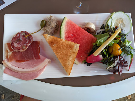 Très décevant malgré un cadre vraiment très agréable (jardin ombragé par les arbres, musique jazz). Nous avions réservé pour 3. À notre arrivée, le patron ne porte pas de masque: étant enceinte, je lui fait remarquer gentiment que je vais remettre le mien. Réponse: « la grossesse c’est pas une maladie madame! Et puis moi je suis vacciné ». Soit, mais les mesures sanitaires sont obligatoires pour tous et nous, nous ne sommes pas encore protégés. Il ne mettra pas de masque, y compris pour cuisiner (car c’est également lui qui cuisine). A l’apéritif, mon mari commande une pression: il arrive avec une bière en bouteille, et lorsque je le remarque: « j’ai pas de pression, mais c’est pareil ça a le même goût! ». Soit ça n’est pas grave, mais pourquoi ne pas le dire à la commande et proposer le choix de la carte en bouteille au lieu d’imposer un produit? L’entrée incluse est composée d’un peu de charcuterie, et d’une petite salade verte agrémentée de légumes en boîte (artichaut, mais, cœur de palmier, asperge), un peu loin des « produits frais » ventés sur la carte. Concernant les plats, la cote de bœuf demandée saignante est arrivée bleue et froide mais était de bonne qualité (par contre la moutarde était périmée depuis février...), mais l’émincé de poulet était beaucoup trop cuit et contenait quelque chose qui ressemblait à des crevettes (??? )Les accompagnements étaient bons (ratatouille et tarte de pomme de terre).Nous n’avons pas poursuivi pour le dessert. Nous étions vraiment enthousiasmés par le concept de carte réduite qui vantait les produits frais et le fait maison, mais le fait de travailler seul n’excuse pas tout. Peut être sommes nous tombés un...