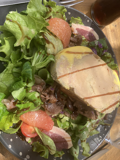 Read moreWir haben aufgrund der vielen positiven Bewertungen einen Stopp in „der alten Dame“ eingelegt. Positiv zu erwähnen ist der Außenbereich. Unter einer schönen Überdachung kann man geschützt vor der Sonne angenehm sitzen. Ebenfalls positiv zu erwähnen sind die beiden jungen Damen im Service. Für drei Sterne in der Gesamtwertung hat es leider nur wegen der Speisen gereicht. Wir hatten Salat mit Ziegenäse und Salat Perigourdine. Beide Salate waren ohne Raffinesse zubereitet. Einfaches aber zu wenig Dressing, keine frischen Kräuter, keine Nüsse oder Samen, keine positive Überraschung. Dafür Feldsalat mit deutlich sichtbaren Wurzelenden und einigen Salatblättern mit schwarzen Rändern. Zuhause würde man die aussortieren oder abtrennen. Erst recht sollte das in einem Restaurant der Fall sein. Der Ziegenkäse wurde auf Toasbtrot serviert. Dazu sehr viel (zu viel) Speck. Kein Honig oder eine andere Nettigkeiten. Auch der Salat Perigourdine war ohne nennenswerte positive Überraschung. Dafür viel und groß. Baguette wurde separat serviert. Noch ein paar Worte zum Gastraum: Es ist kein architektonisches Konzept zu erkennen. Neben der klassischen Einrichtung mit Tischen und Stühlen gibt es ein Sofa, einen Billardtisch, einen Kicker und eine Eistheke. Es gibt keine erkennbaren Zonierungen (z.B. mittels Pflanzkübeln, niedrigen Raumteilern, etc.). Der Gastraum hätte deutlich mehr Potential. „La vieille Dame“ wurde unserer Meinung nach den vielen Vorschusslorbeeren nicht gerecht. Wir würden nicht wiederkommen. Dennoch Daumen hoch für die beiden freundlichen, geduldigen...