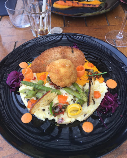 Really beautiful location. We had a delicious meal here on the shaded balcony, overlooking the beautiful views of the river. The food was exquisite. I am vegetarian and dairy-free and the chef made me a wonderful dish made up of many things from the menu. The rest of my family had starters and mains from the menu and all thought they were delicious. We then shared three desserts, that were all wonderful and beautifully presented. The staff were really friendly and accommodating. Felt like a real treat. Extra bonus is our three year old could then go crazy on the great playground near the river just below the restaurant....