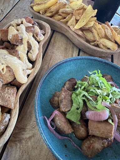 Read moreSincèrement : à fuir !!! Mais comment est-il possible d’avoir une note à 4,5/5. Il n’y a certainement que les copains qui notent et peut être certains enfants !!! Sincèrement outre le fait que la moitié de la carte soit indisponible et que les prix soient très supérieurs à ceux indiqués sur le net, serveur décontracté mais vraiment trop décontracté (et ziva…) et que l’ambiance à la cuisine semblait excellente (on les entendait se marrer à chaudes gorges jusque dans la salle…), l’expérience est pitoyable. Calamars immangeables (le ‘cuistot’ est parvenu à ce que les calamars soient à la fois secs et imbibés d’huile). C’était donc des calamars surgelés à l’huile… Les patatras bravas cramées ou celles du dessus du copieux plat ont été mangées (car j’avais faim) et celles du dessous laissées car baignant dans l’huile. Les moules marinières étaient tout juste mangeables (sans assaisonnement : à l’eau donc et beaucoup de moules mal nettoyées) et les patates qui les accompagnaient étaient hyper cramées (cette fois le cuistot a dû s’endormir devant la friteuse…). Seuls les nuggets du copieux menu enfant étaient potables, ainsi que la glace. Je comprends que toutes les tables étaient occupées par des parents avec plusieurs enfants car seul le menu enfant est mangeable… Enfin, lorsqu’une table mangeait tout, le serveur demandait si cela s’était bien passé. Allez comprendre, à nous qui n’avons quasi rien mangé, aucune question nous a été posée… Alors, il est aussi vrai que beaucoup de restaurants étaient fermés pour un week-end de trois jours avec grand soleil annoncé (Toussaint 24). Donc ceux ouverts en profitent certainement pour abuser des touristes qui sont pourtant là pour les faire travailler. Une véritable honte pour la...
