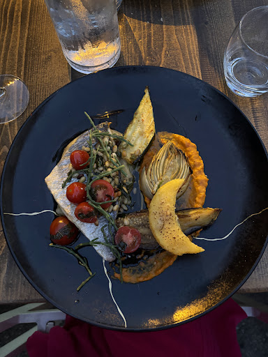 En vin, un Mire L'étang 2013 extrêmement bon. Un peu piquant pour la salade du pêcheur, demandez un verre de blanc sec plutôt. J'ai fais l'erreur... Errare humanum est...!