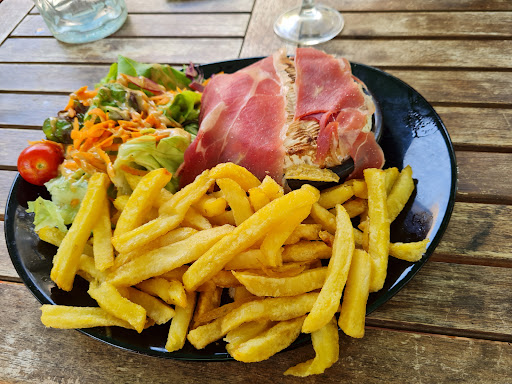 We were warmly welcomed and had a nicely situated table, with a great vista, in the shade. We were served our 'locally produced' drinks promptly and we pleased with the menu available. Again we were served without much delay and the plates arrived well presented. The 3 of us enjoyed the meals and the only criticism would be that, although delicious and well cooked with plenty of flavour, the Grilled Gambas 'plat du jour' only contained 3 Gambas per plate. The 'Bull' steak dish was however delicious and a good portion. Notwithstanding this, we would go back at least to try another of...