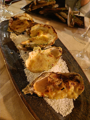 Food - 2.5/5 The food at Miam was a very mixed bag. The gratin oysters were tasty and the french fries also very good but beyond that it was very disappointing. We went for the scallops and prawn platter with rice. The scallops were well cooked but both they and the prawns had a bitter, burnt off-flavour to them. We also ordered the duck - the duck was so over-cooked, it was hard and chewy like tyre rubber. Pretty horrendous.