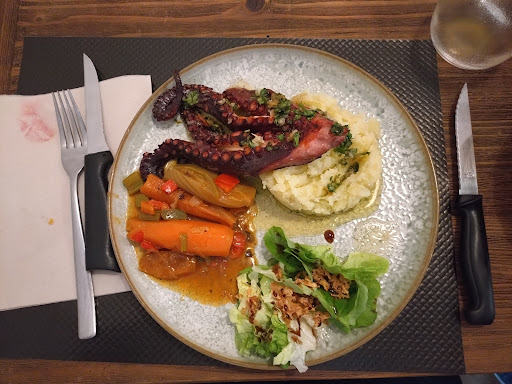 Croquetas bien cuite mais ne sont pas faite maison. Ma daurade était sèche (dommage étant proche de la mer) La petite ratatouille ajouté à l’assiette est clairement sortie de boîte et est inutile à l’assiette Aucun apéro (boisson) proposé, nous sommes passer à la commande des plats directement… malgré ça les plats sont plutôt bien dressés Le personnel est très sympa et les vins locaux le temps du plat est très satisfaisant, important de profiter des investitures de la...