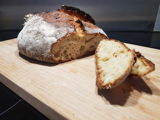 Read moreUn pain qui nourrit puisque nous n'avons mangé que cela à midi et cela nous a fait bien plaisir. Mon bémol, il est quasi certains que nous étions les clients avec les revenus les plus faible de la journée et je trouve que cela est un peu triste de ne pas pouvoir faire découvrir au plus grand nombre toute cette générosité, tout cet amour du travail si bien fait à des personnes qui n'ont pas la possibilité de s'offrir un pain qui je le crois, réanime celui qui le goûte.. Ce pain si bon, si nourrissant est comme la station de ski de Gstaad, réservé à ceux qui peuvent mettre le prix... Ce commentaire n'est pas critique envers ceux qui font vivre ce lieux (ils n'ont pas fixé les règles de la société capitaliste) mais simplement le constat d'une très grande fracture sociale dans un pays qui permet à ceux qui ont eu de la chance, le bonheur de bien réussir matériellement et d'avoir un emploi stable de se nourrir de produit remarquable comme tous ceux présent dans cette incroyable boulangerie. Pour les autres comme moi qui après calcul savent que ce pain est aujourd'hui un produit de luxe par rapport à leur budget quotidien, ils viendront ici mesurer tout ce qui les séparent des gens bien nés. C'est triste de ne pas pouvoir mettre en place une grande école publique ou l'on apprendrait à faire du pain aussi bon et aussi nourrissant que celui la, c'est triste de ne pas essayer de produire à plus grande échelles des blés aussi bon aussi sain que ceux auquel nous avons goûté en ce lieux(quand on pense que des entreprises qui licencie massivement perçoivent des subventions publique je suis certains qu'ils seraient plus intelligent de subventionner les producteurs de blé anciens et bio), c'est triste que la boulangerie de Cucugnan soit une exception car pour moi elle devrait être la règle ... Un très grand bravo à tous ceux qui travaille autour de ce pain remarquable tant sur le fond que sur la forme. J'espère que ce commentaire un peu trop politique ne vous dérange pas si tel était le cas, je le supprimerai volontiers ou le raccourcirai pour ne laisser que transparaître la qualité des lieux et des produits qui s'y trouvent... C'est fou comme un pain peut...