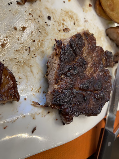 Plato principal: De segundo intentamos comernos dos entrecots con suplemento (5⏠aprox), nos apetecĂa carne y la pedimos que no sangrara y nos trajeron dos carnes completamente carbonizadas. Una pena porque la carne tenĂa pinta de ser buena, acabo la mitad en la basura pues era imposible de comerse esa suela de zapato.