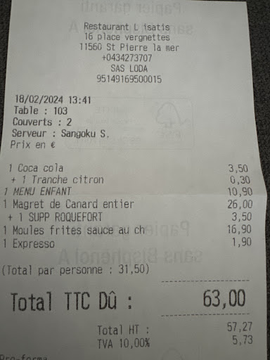 Read moreIf you are ever in this part of the world 🌎 restaurant L'isatis is definitely worth a visit. Great service👌, fabulous food 😋, and very reasonable 💶 We were enjoying it so much, I forgot to photograph the pistachio and chocolate ice-cream desserts 🍨 🍨 🤦🏼♂️ and the coffees ☕️ ☕️ 😂