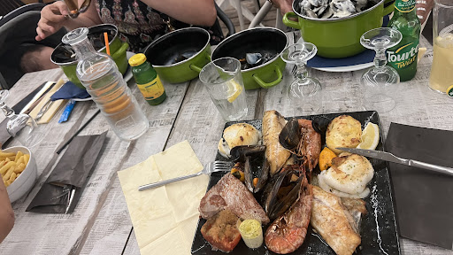 Nous avons attendu 25 min nos plats sans même un morceau de pain pour l'enfant. 25 min pour des moules, j'ai envie de rire sachant qu'il faut 3 min de cuisson, je ne parle pas de la cuisson des frites surgelés. Le steak enfant bien cuit était cramé + des antenne de gambas ou crevettes collés dessus. ( visiblement rincer la plancha entre 2 cuissons ne fait pas partie de leur priorités, bonjour le manque d'hygiène et les allergies) Tout était froid. Les moules certaines trop cuites et d'autres fermées ( le cuisinier à du oublier de mélanger à la cuisson )