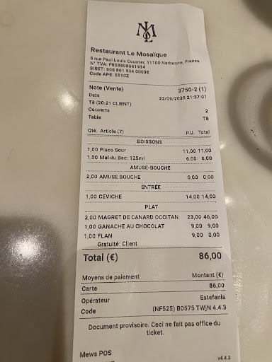 Read moreAvoid!! Many better options in Narbonne. We went there in May 2024. The waiters were probably the worst in Narbonne. The wine menu was fake. They didn’t have most of the wine on the wine list. When the waiter finally brought out something they had, he wouldn’t even pour the wine. He just opened it and slammed it on the table and asked us to pour ourselves. My partner (who spoke French) told me that he made some pretty mean comments. We waited for at least an hour if not more for the food after we ordered. Food was mediocre at best. It was Instagram perfect, but that’s it. Everything else was not worth the price they charged. The couple behind us were complaining too, and they left early. When French workers gave you attitude for no reason, it’s the worst kinda life experience you could have. It was supposed to be our family celebration. I was pretty angry when I left. You’re now warned! Don’t be tricked by insta...