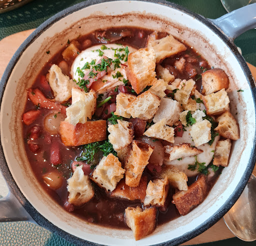 Read moreLe repas Ă©tait trĂšs bon et bien cuisinĂ©. Choix en entrĂ©e : Ćufs en meurette. Choix en plat : filet de canard au miel, pommes de terre grenailles, purĂ©e de carottes, champignons et navets. Quelques bĂ©mols : prix assez chers : normalement les Bouillons sont connus pour leur repas gĂ©nĂ©reux et trĂšs peu chers, ce qui n'est pas le cas ici, d'ailleurs il n'y a mĂȘme pas de menu, tout est Ă la carte. ambiance trĂšs bruyante : les tables sont quasiment toutes collĂ©es sur la partie gauche de la salle vers les baies vitrĂ©e au lieu d'ĂȘtre espacĂ©es, et si, comme nous, vous vous retrouvez Ă cĂŽtĂ© d'une table oĂč l'on parle plus que fort, vous ne vous entendez plus Ă votre propre table, et franchement de connaĂźtre la vie des autres n'est pas mon but quand je vais...