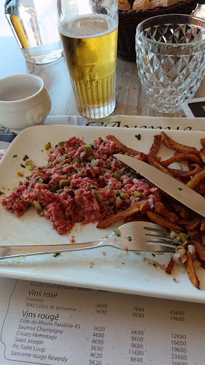 Excellent, frais, copieux et service ultra rapide par le couple de gérant! Que dire d'autre... Une carte qui est suffisante, vous trouverez toujours quelque chose à votre goût. Quelques "pièces de boucher" incroyables (félicitations aux éleveurs et bouchers): pavé, haché... Des salades épatantes et des desserts succulents dont la plupart fait maison. Quelques bonnes bouteilles de crus également pour accompagner ces mets. Des prix raisonnables avec 3 formules (si je me trompe pas). Moi j'y suis retourné à midi et me suis fait plaisir avec un tartare cru et surtout un petit moelleux aux pommes avec crème anglaise... Il est à noter qu'il y a une petite terrasse couverte devant. Seul petit bémol, il faut mieux réserver certains jours. PS: le café est également très bon...