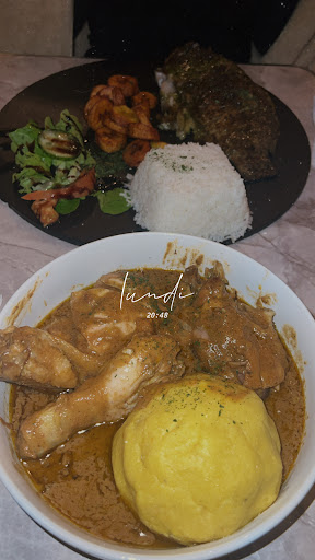 Pour le plat et dessert franchement c'Ă©tait bon on voit qu'il y a du travail et que ça cherche Ă plaire , j'ai pris un attiĂ©kĂ© poulet et j'ai aimĂ© le couscous manioc on est bien rassasiĂ© un peu Ă©tonnĂ© du goĂ»t au dĂ©part car on a pas l'habitude mais franchement prĂ©sentation etc bien.. Juste j'aurais aimĂ© un peu plus de gĂ©nĂ©rositĂ© pour le poulet et les cruditĂ©s une cuisse de poulet c'est un peu juste.. Le dessert, la crĂȘpe est bonne bien travaillĂ© et gourmande rien Ă dire et il y a une bonne ambiance.