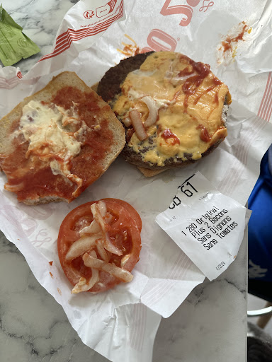 Enfin, je suis toujours prodigieusement étonné par cet établissement qui vend ses frites quasi froides, avec ses hamburgers, pardon des sandwiches… qui ressemble à un gros caca, incomplet avec un fromage qui n’a pas fondu !!!