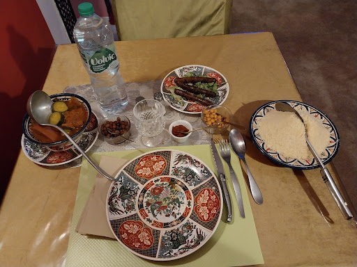 Essen: Tajine hatte leider sehr wenig Fleisch und sehr viel Knochen, bei viel Couscous als Sättigungsgrundlage. Die karamellisierten Rosinen waren sehr lecker, wobei ich mich über ein paar mehr gefreut hätte.
