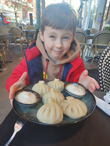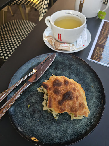 La caissière nous a expliqué que la personne en cuisine est géorgienne, ce qui explique l’originalité des plats. On a fait une petite sélection, un peu au feeling… et on a adoré ! Mention spéciale pour la crêpe fourrée aux épinards, vraiment délicieuse. Les Samsa à la viande aussi !