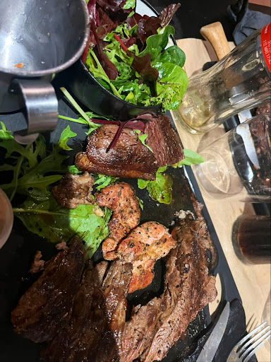 Eventually, I ordered the “planche carnivore,” expecting mostly beef, but it turned out to be mainly pork and duck . The menu didn’t list the ingredients, and no one explained what was included. For a dish that cost €40, I couldn’t even eat it — the meat had a strong smell (like cow), and it was extremely tough, not tender at all.